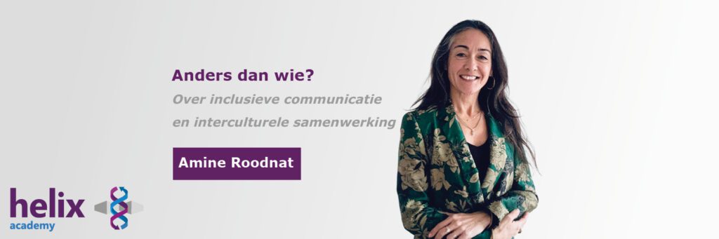 Amine Roodnat vertelt in haar blog over haar werk als docent inclusieve communicatie en interculturele samenwerking. In deze blog meer over wat het betekent om ‘anders’ te zijn? Wie bepaalt dat? Amine daagt je graag uit om voorbij labels en aannames te kijken. Ontdek hoe interculturele communicatie begint bij het begrijpen van jezelf én de ander..